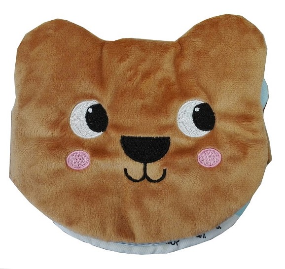 Dos libros de tela con forma de cara de animal: de gatito y de osito. Libros con cubiertas ultrasuaves para estimular el tacto del bebé y con sonajero insertado en ellas para que cuando el bebé mueva el libro, este suene. Ambos libros están ilustrados con colores fuertes y vivos.