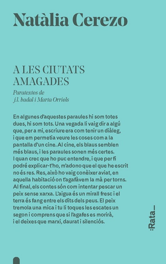 Hi ha una estranyesa minimalista que queda sostinguda en l'ànima de qui llegeix les històries que Natàlia Cerezo recull en el seu primer llibre de contes, A les ciutats amagades. Una intimitat oculta, que s'intueix intensa en tots els seus personatges, solitaris i profunds, que es defineixen per tot el que callen i el que han perdut. Sobreviuen, i ella ho trasllada al paper. Ens explica la vida que transcorre en un estiu calorós i plàcid, la de l'entorn rural i tranquil on sembla que mai passa res, la dels veïns que fan veure que no es coneixen però es desitgen amb passió, la de la infantesa interrompuda per la pèrdua i la malaltia, la de pares que no van saber ser fills i fills que no voldran ser pares, la dels mesos transcorreguts en ciutats que ens seran sempre alienes.