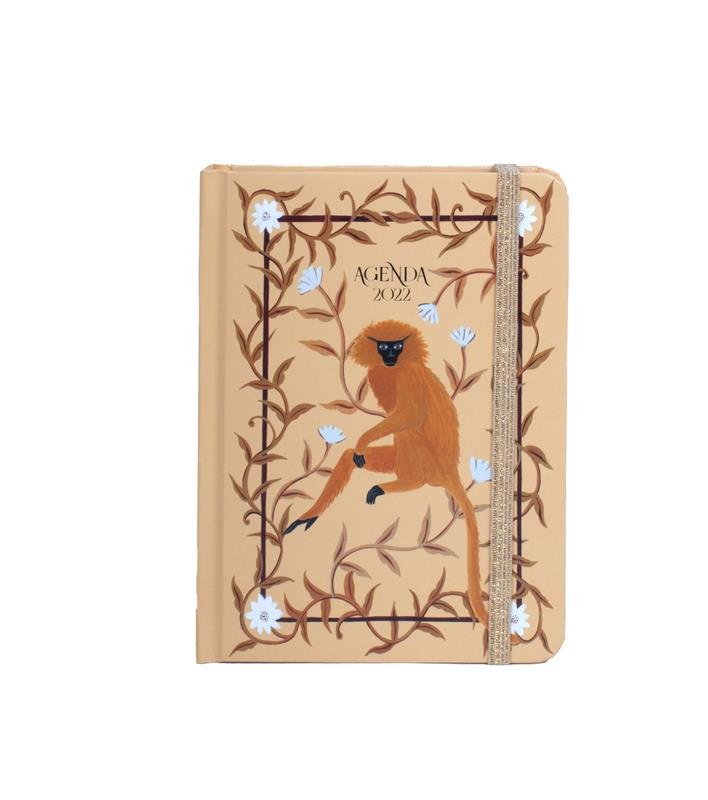 Una agenda de lujo en formato mini, disposición a semana vista, adhesivos, tacos de pósits, bolsillo interior, cinta marcapáginas, goma de sujeción, y, además, con mensaje ya que da protagonismo a los simios en peligro de extinción.