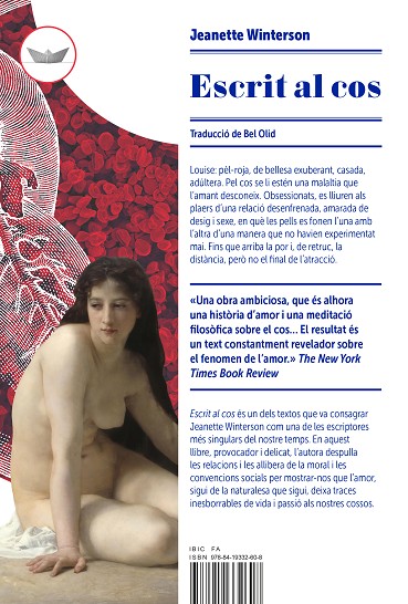 Escrit al cos és un dels textos que va consagrar Jeanette Winterson com una de les escriptores més singulars del nostre temps. En aquest llibre, provocador i delicat, l’autora despulla les relacions i les allibera de la moral i les convencions socials per mostrar-nos que l’amor, sigui de la naturalesa que sigui, deixa traces inesborrables de vida i passió als nostres cossos.