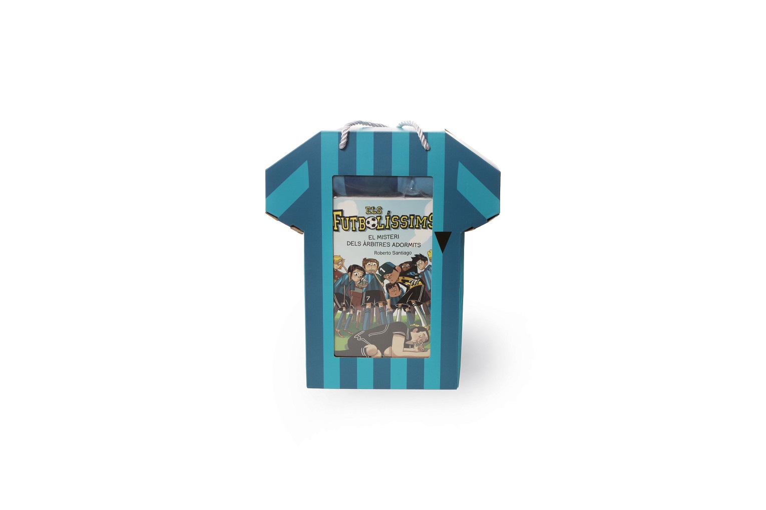 Pack del llibre El misteri dels àrbitres adormits amb la samarreta signada pel Pakete. Partits de futbol, rivalitats, amistat, primer amor... tot això i molt més es barreja quan, de sobte, els àrbitres sempre es queden adormits a mig partit dels Futbolíssims.